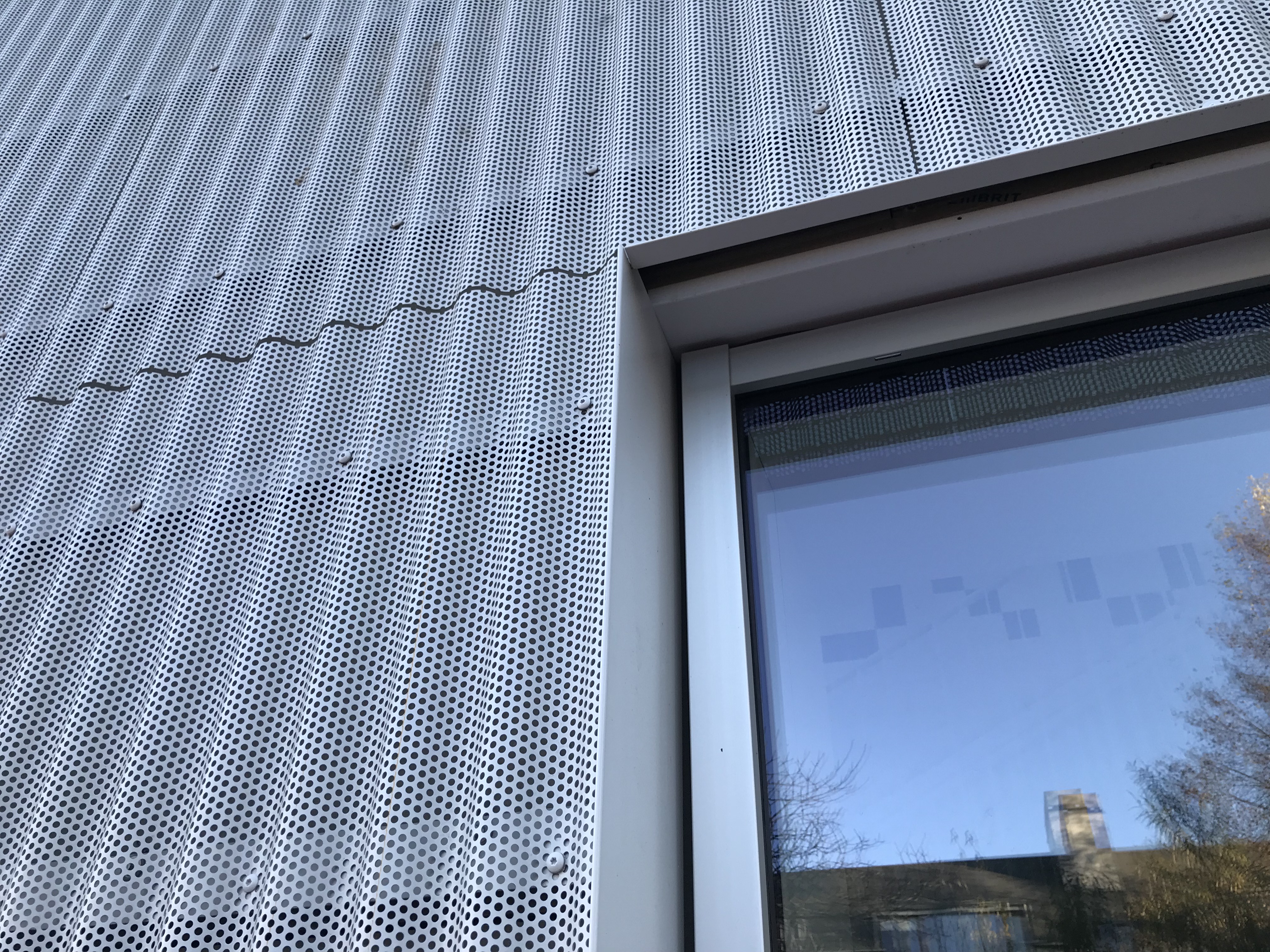 Ud over sinuspladerne har vi leveret alle inddæknings- og afslutningsprofiler på facaden.
