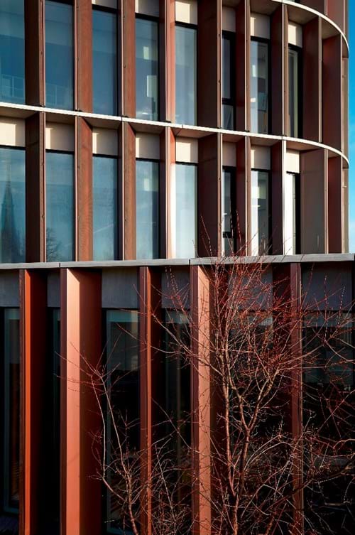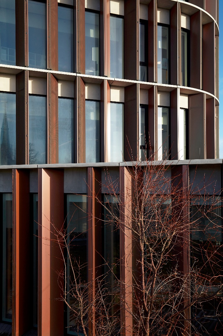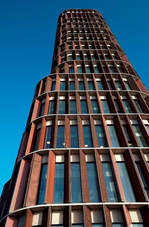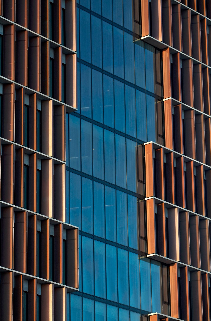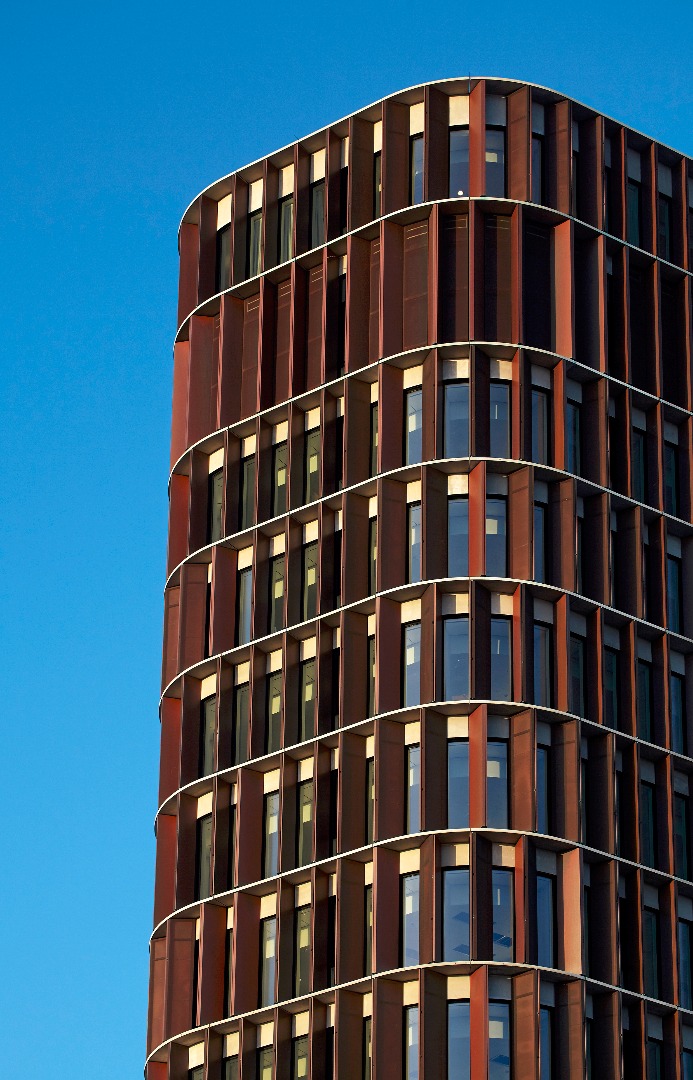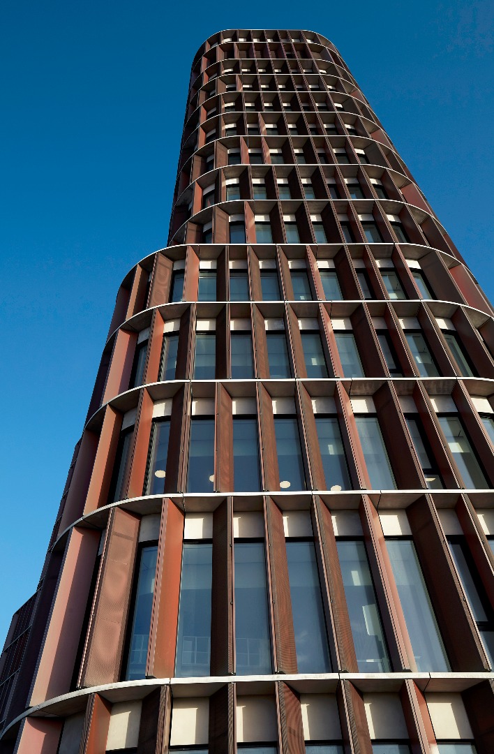 KME og Metalcenter Group har håndteret det indledende arbejde med C. F. Møller A/S. Mærsk Tårnet er beklædt med TECU® Classic Bond samt TECU® Copper Mesh til bygningens facader.
