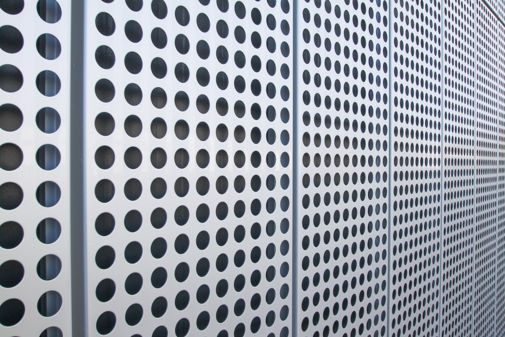 • Close up af aluminiumplader monteret på væg