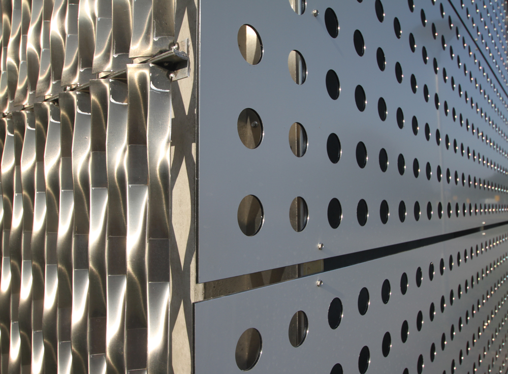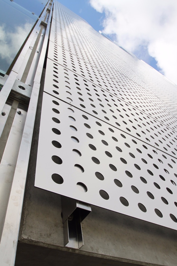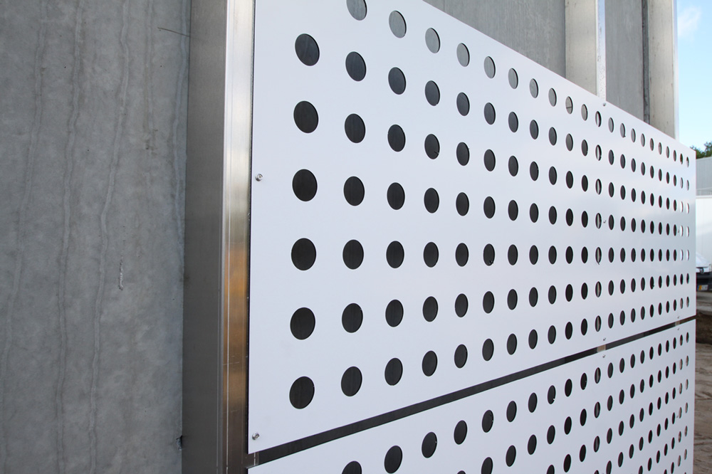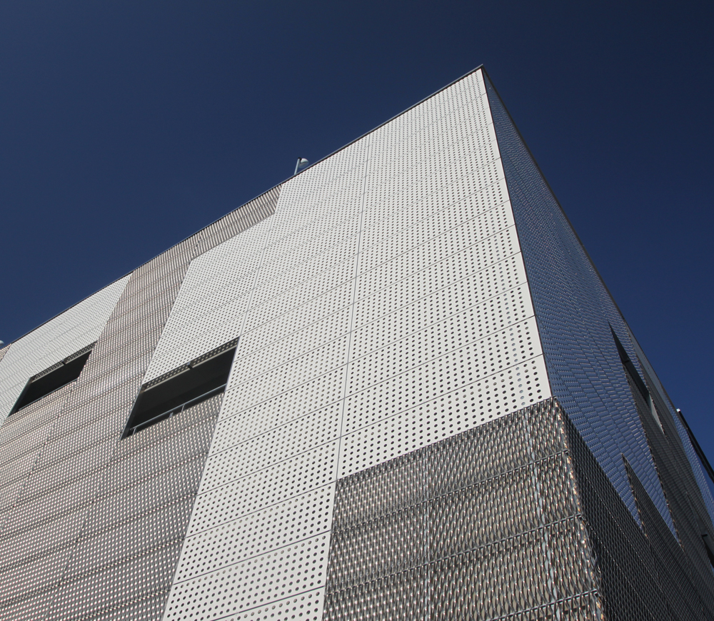 Alucobond-facadeplader i farven Pure White 10, 100 og strækmetalplader i ubehandlet aluminium |