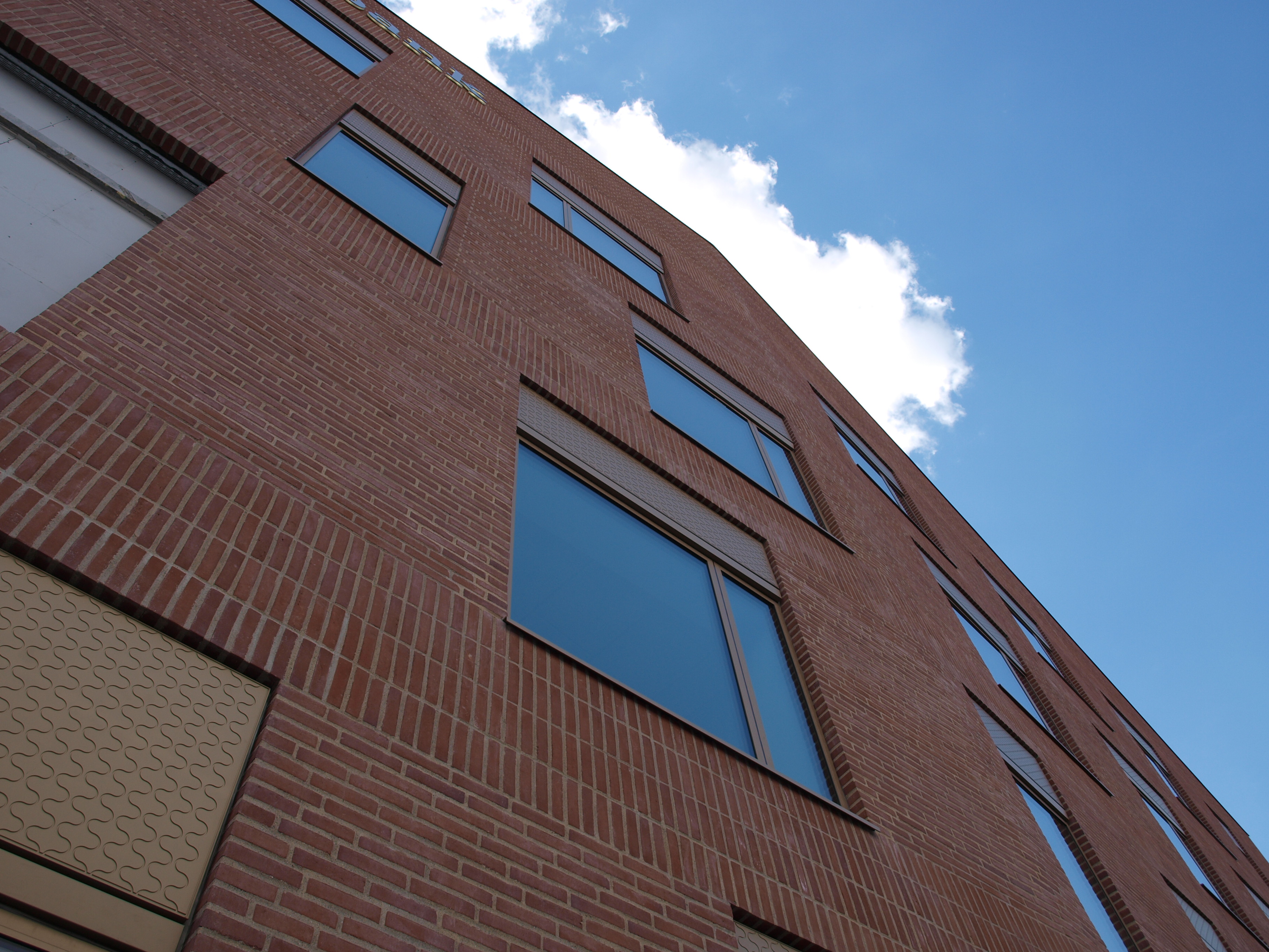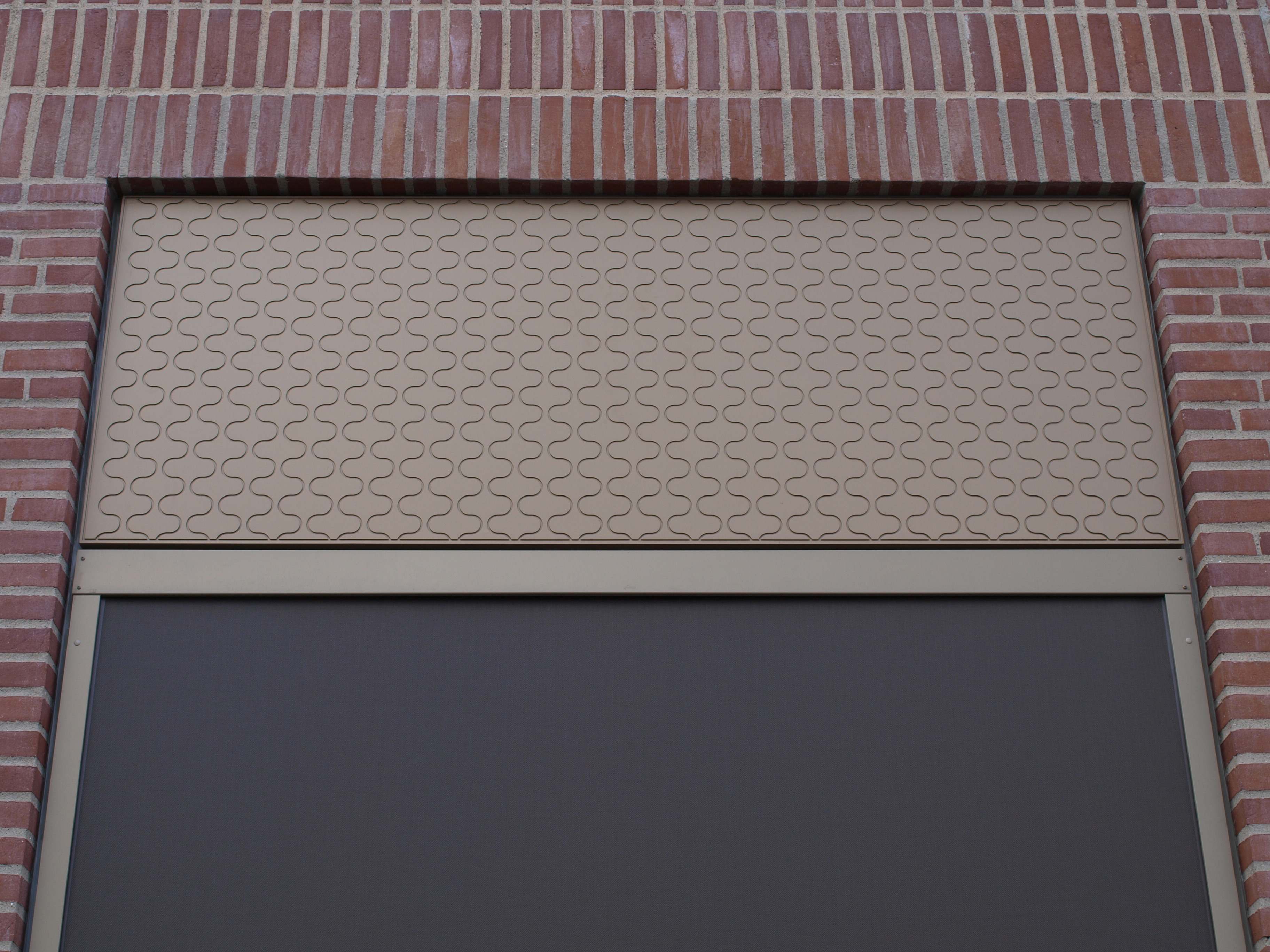 Alumeco har leveret plader med fræste spor til Blitek A/S, som har monteret pladerne for NJ gruppen A/S. Sporene er 5 mm i bredden og 2,5 mm dybe, og de udgør et mønster på pladerne, der står i kontrast til den traditionelle murstensbygning. På bagsiden af pladerne er der langs alle kanter påsvejset z-profiler i 2 mm i samme legering som pladerne.