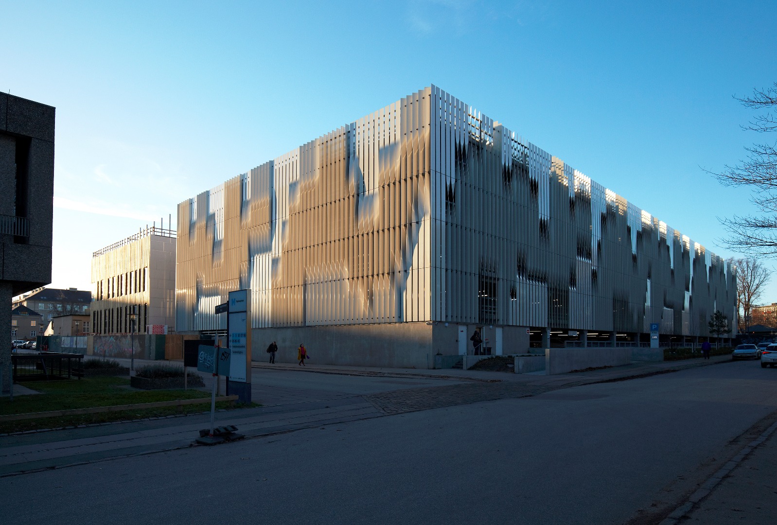 Rigshospitalets nye parkeringshus er beklædt med specialprofiler fra Alumeco.
