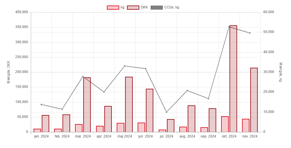 Tallene opgøres i CO2e, som er standarden inden for CO2-opgørelser. Tallene er baseret på gennemsnitstal og data fra vores leverandører.